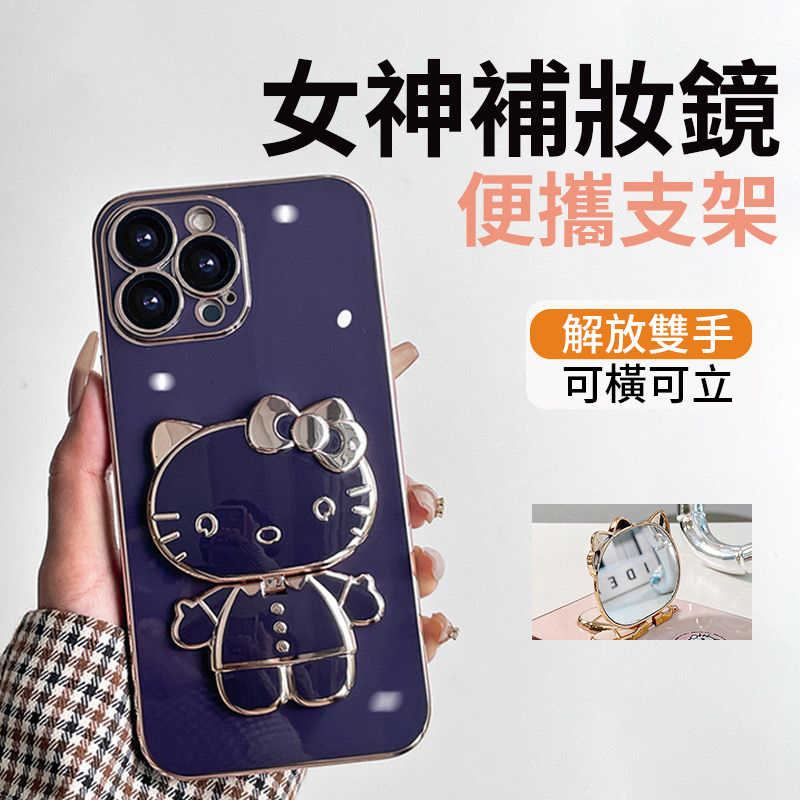 iphone 新品上市 凱蒂貓 支架補妝鏡#自帶鏡頭膜#不佔指紋#防手汗# 防滑#防摔手機殼!!