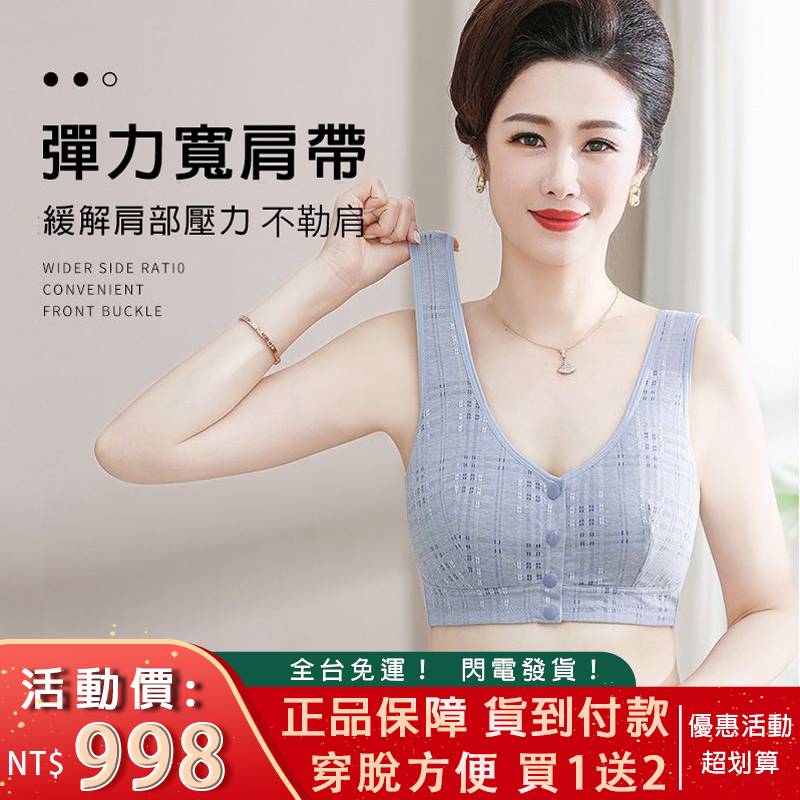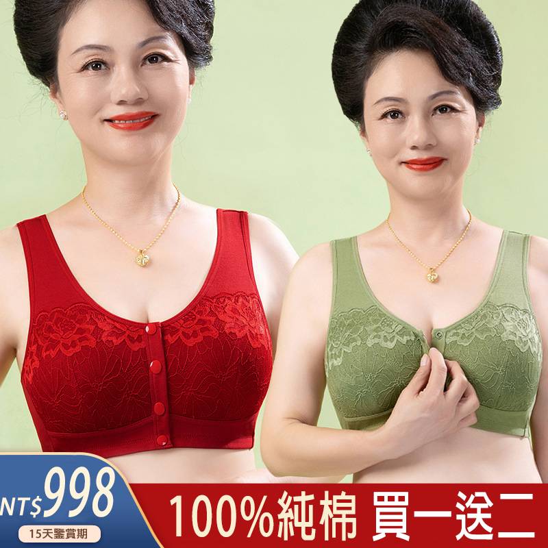 【買一送二,碎花前扣内衣】带胸墊大胸大碼,舒適聚攏上托,一片無痕背心式,前開扣穿脱方便,解決中老年手不利索的穿衣問題。