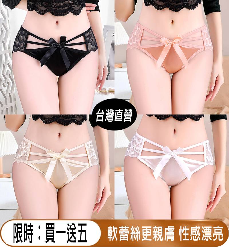 蕾絲蝴蝶結內褲,買一送五,軟蕾絲更親膚,性感漂亮!