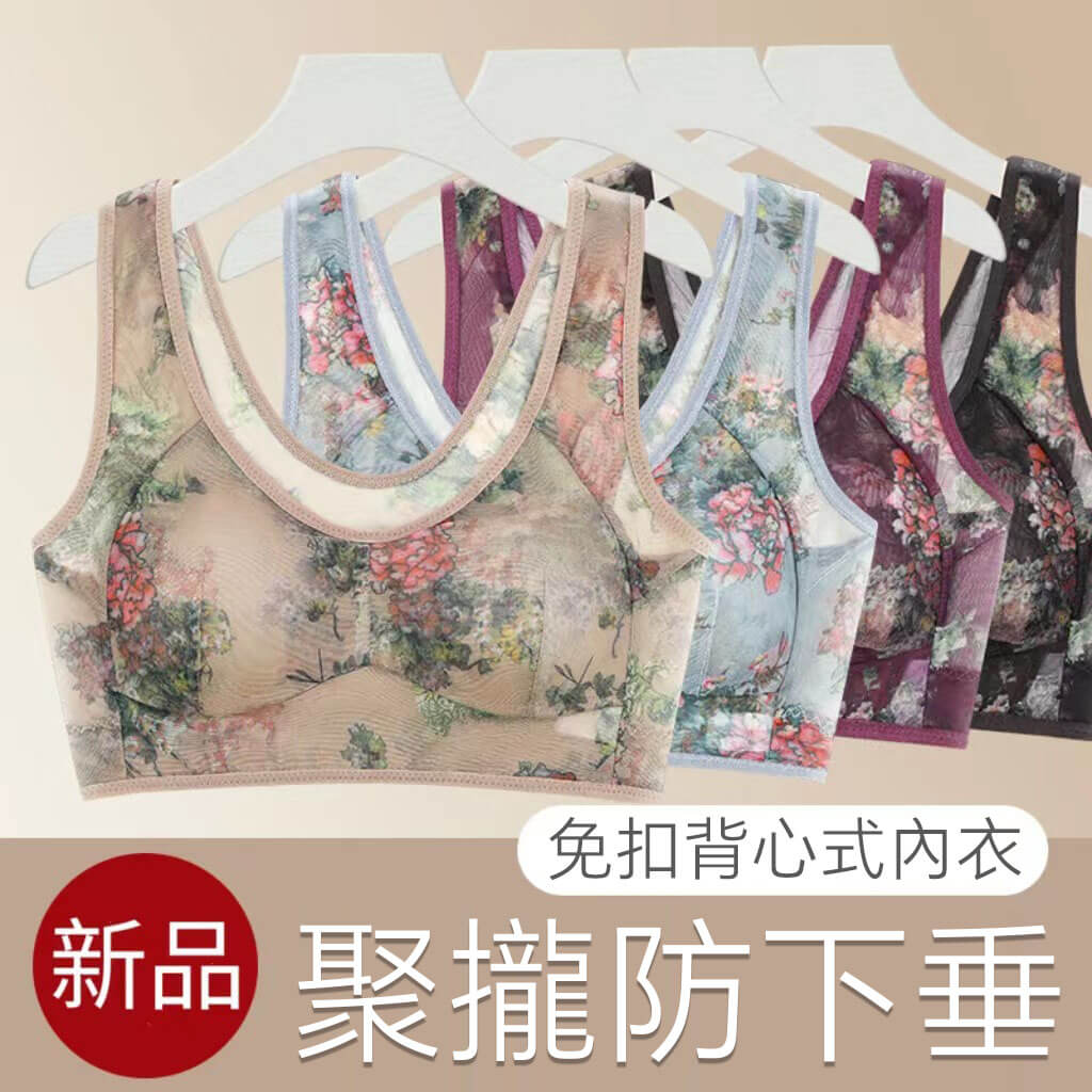 40-100公斤~中老年無痕内衣女文胸無鋼圈大胸顯小收副乳背心式睡眠文胸內衣