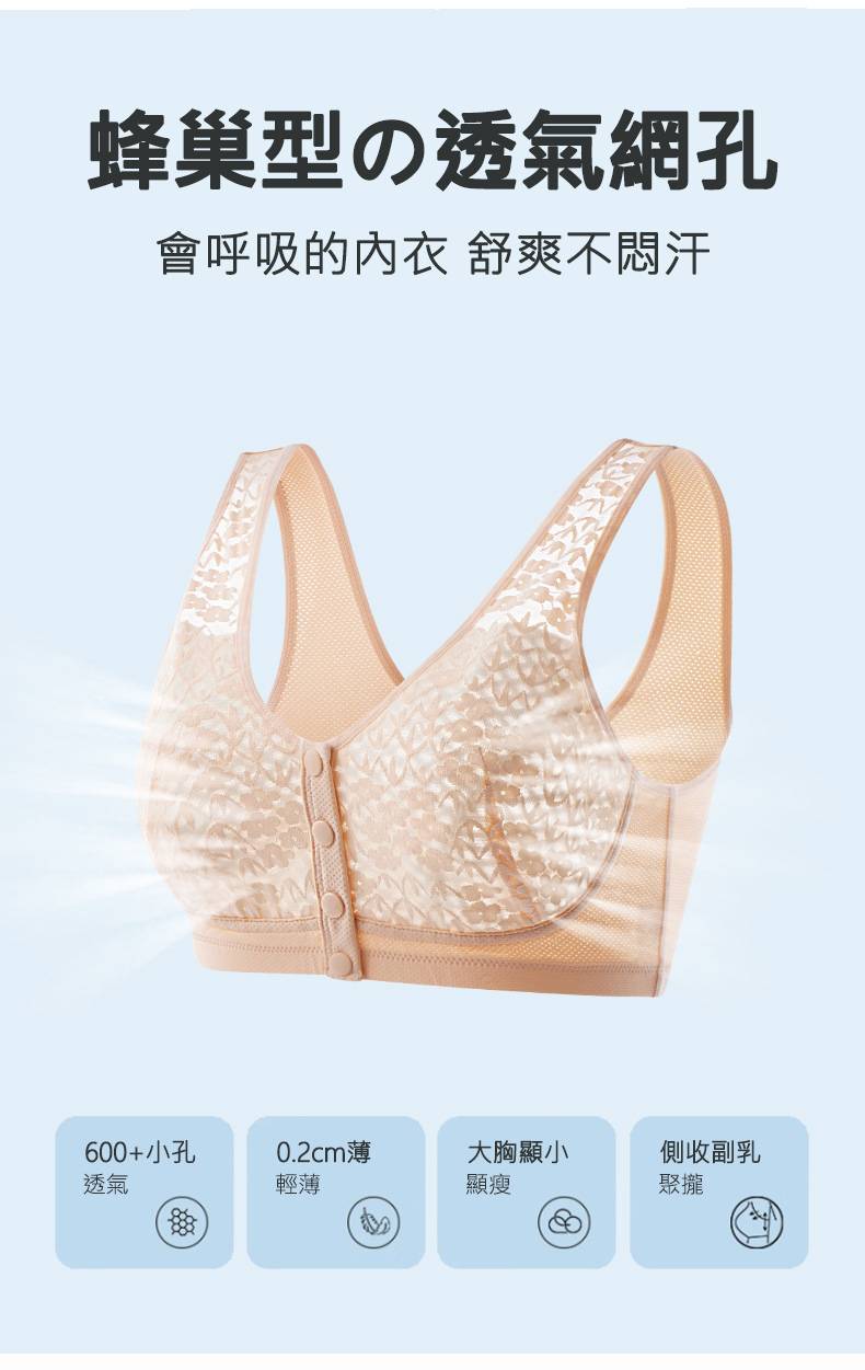 20分鐘前夏天怕悶熱怕麻煩,穿這款內衣就對了!性感蕾絲網紗+呼吸透氣大網孔,不悶胸,不摀汗,大包收副乳,聚攏上托,穿脫特別方便! - 買二送二 NT$1498 均價375/一件