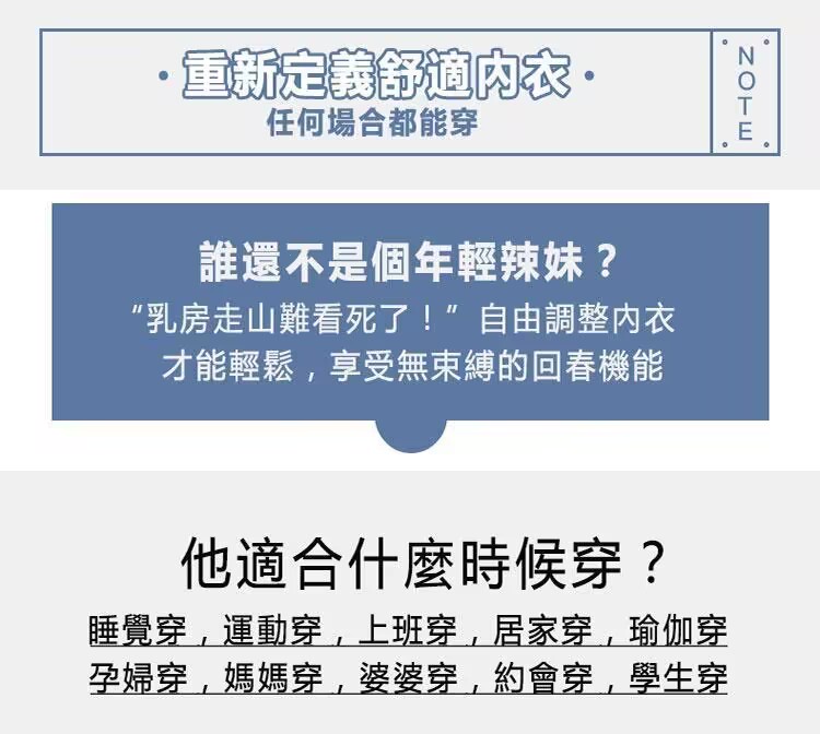 所以不僅通勤、居家的時候能穿,孕期、哺乳期也能穿,因為對乳房完全沒有壓迫感,避免了漲奶的痛苦!
