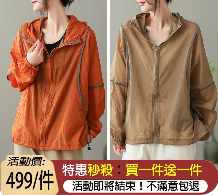 15分鐘前意大利原創品牌,時尚又漂亮的冰絲防曬衣,打敗普通防曬衣的色彩,防曬UPF50+【買一件送一件,免運費】 - 買一送一,防曬又時尚-NT$998