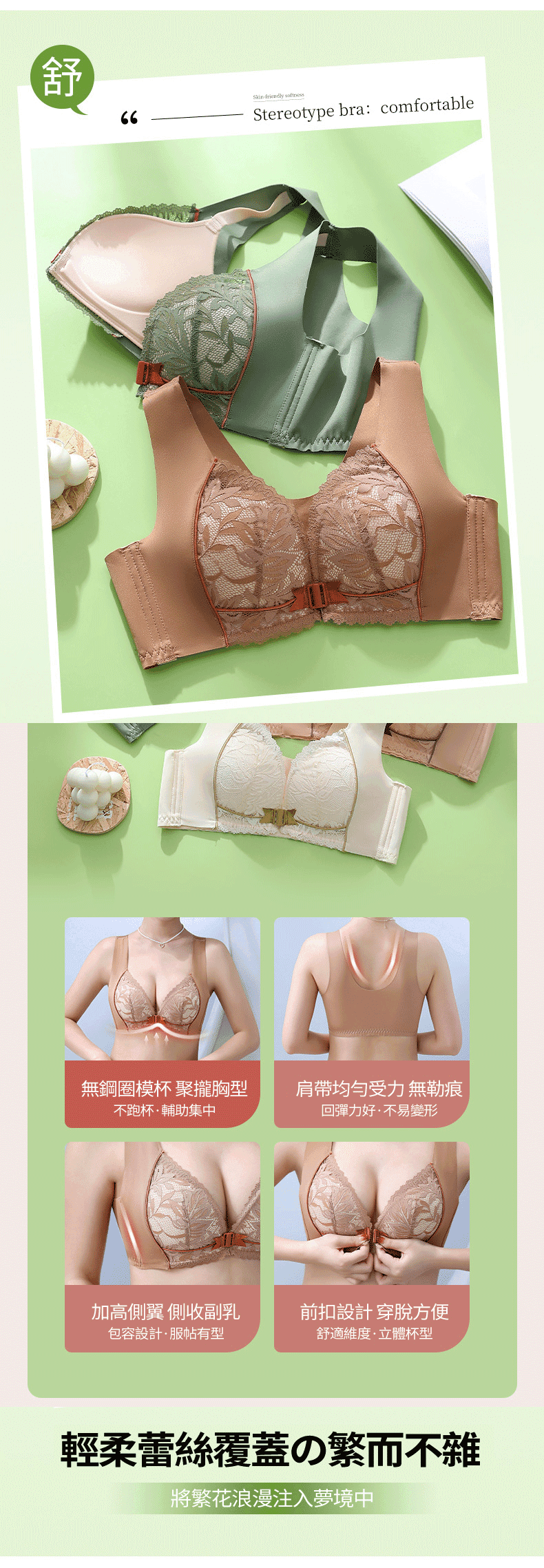 20分鐘前【❤️自由美系列】魚尾前釦設計,輕柔蕾絲覆蓋の繁而不雜 將繁花浪漫注入夢境中,外擴、軟胸、無肉立刻上挺,AIR呼吸罩杯 銀離子抗菌網紗,全天候釋放抑菌功能,彈性大,收副乳,無束縛,聚攏胸型,不滑肩,不溜肩,多款尺碼,4個顏色 - 【自由美】早春新品 單件十入組 NT$1790